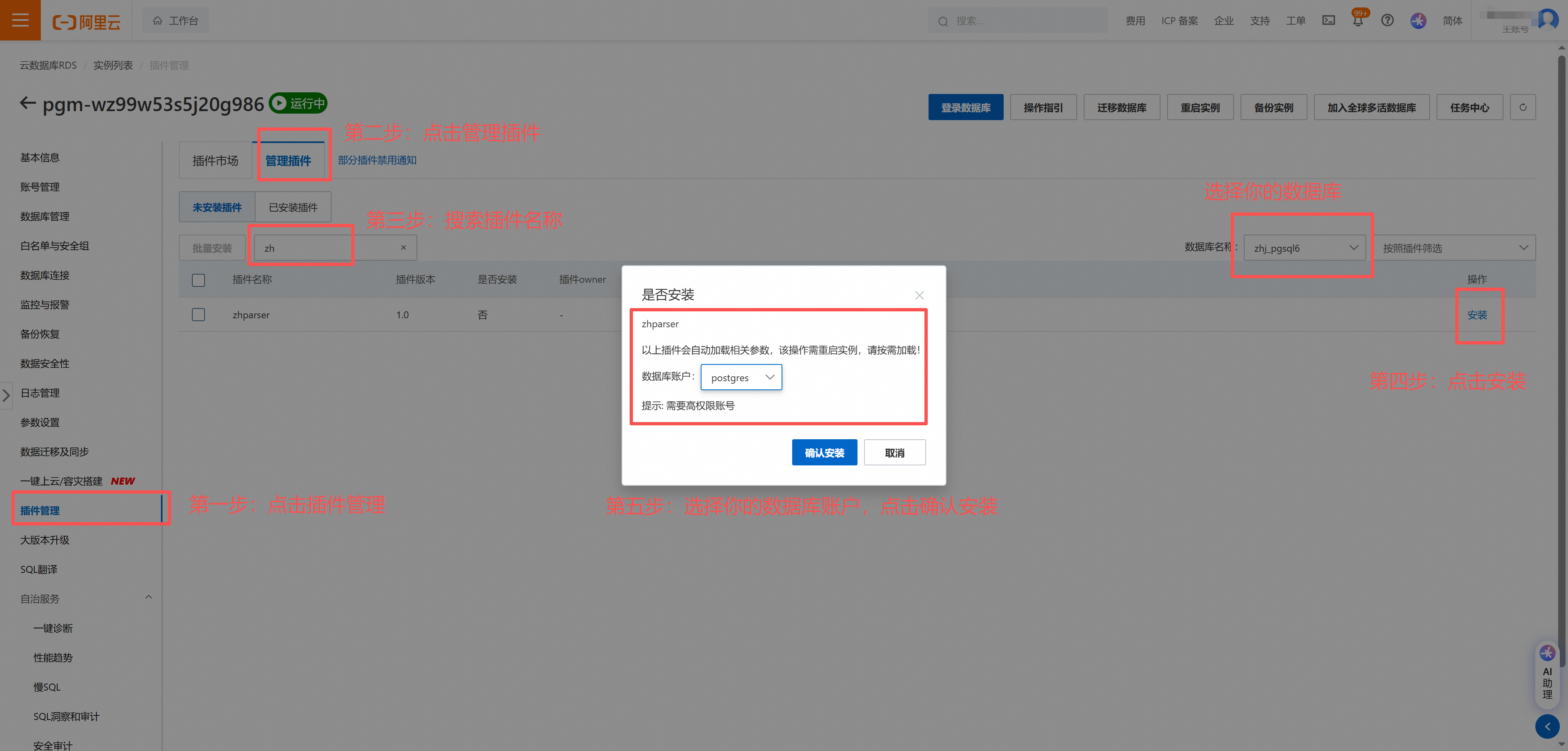 搜索vector、zhparser、 plpgsql(plpgsql默认已存在,没有的话也需要安装)