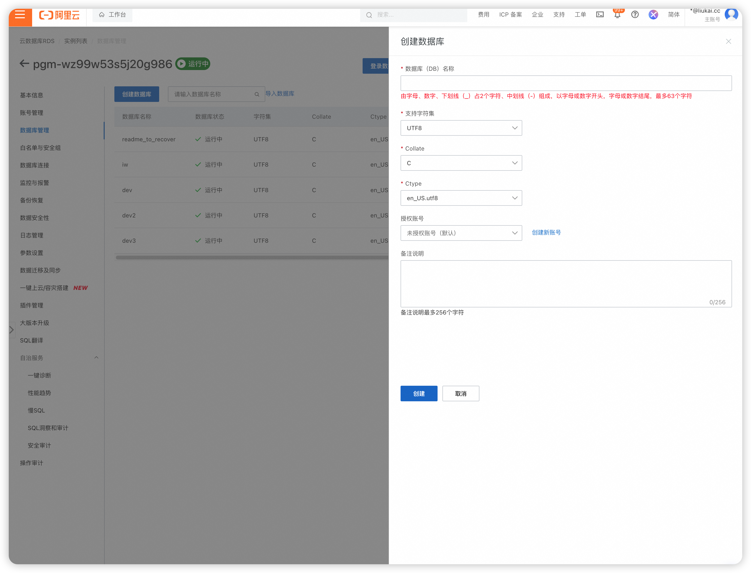 购买完数据库之后,需要等一会实例创建完成进入数据库管理
