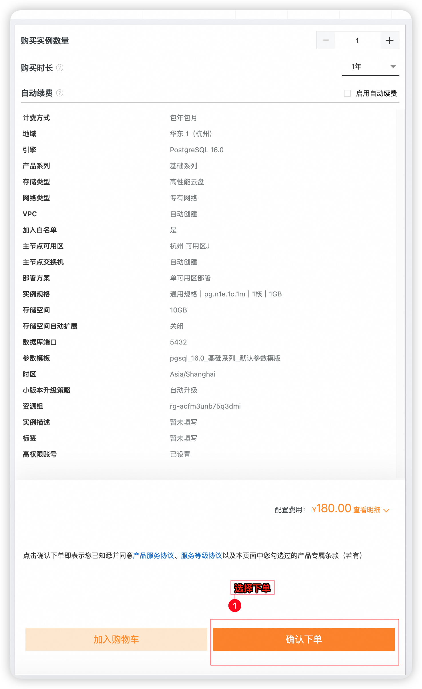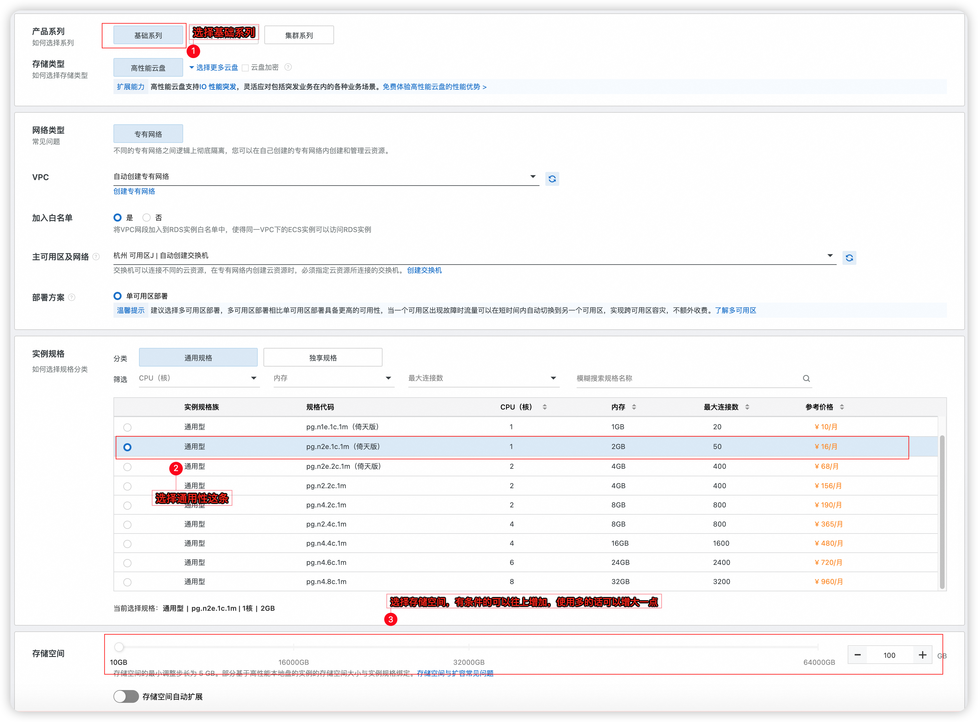 - 安装pg数据库流程:先去阿里云购买pg数据库,购买链接如下https://rdsbuy.console.aliyun.com/newCreate/rds/PostgreSQL?spm=5176.19907426.0.0.10f64f97V5zSg