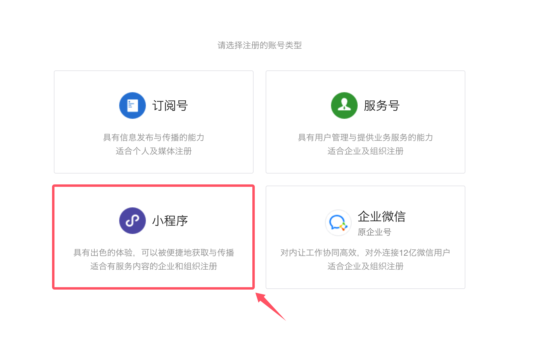 注册微信小程序需准备以下资料: 1. 未注册过微信公众平台的邮箱号 2. 企业营业执照电子版 3. 法人身份证正反面电子版 4. 管理员身份证正反面电子版 5. 管理员手机号 |