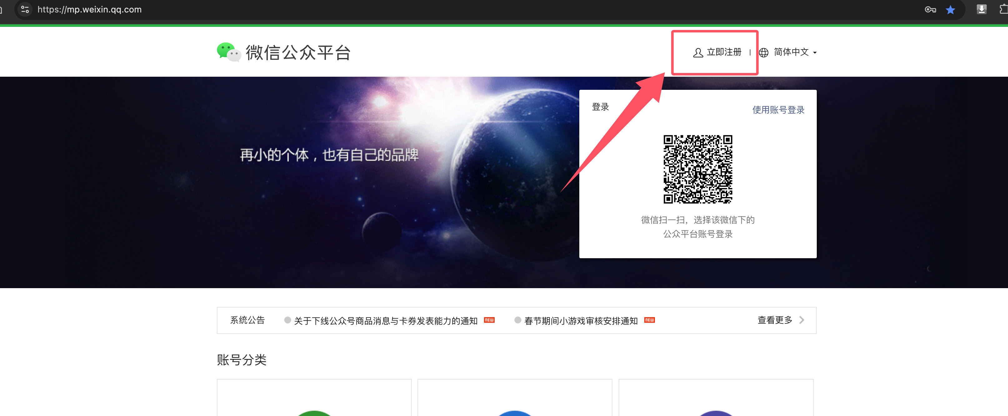 登录https://mp.weixin.qq.com/ ,输入扫码登录或输入账号密码