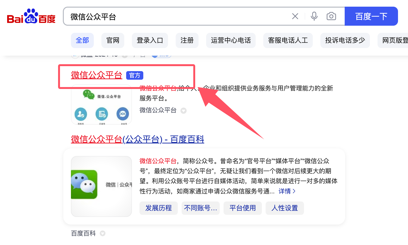 1. 打开电脑浏览器搜索“微信公众平台”,点击蓝色官方标识的网站。